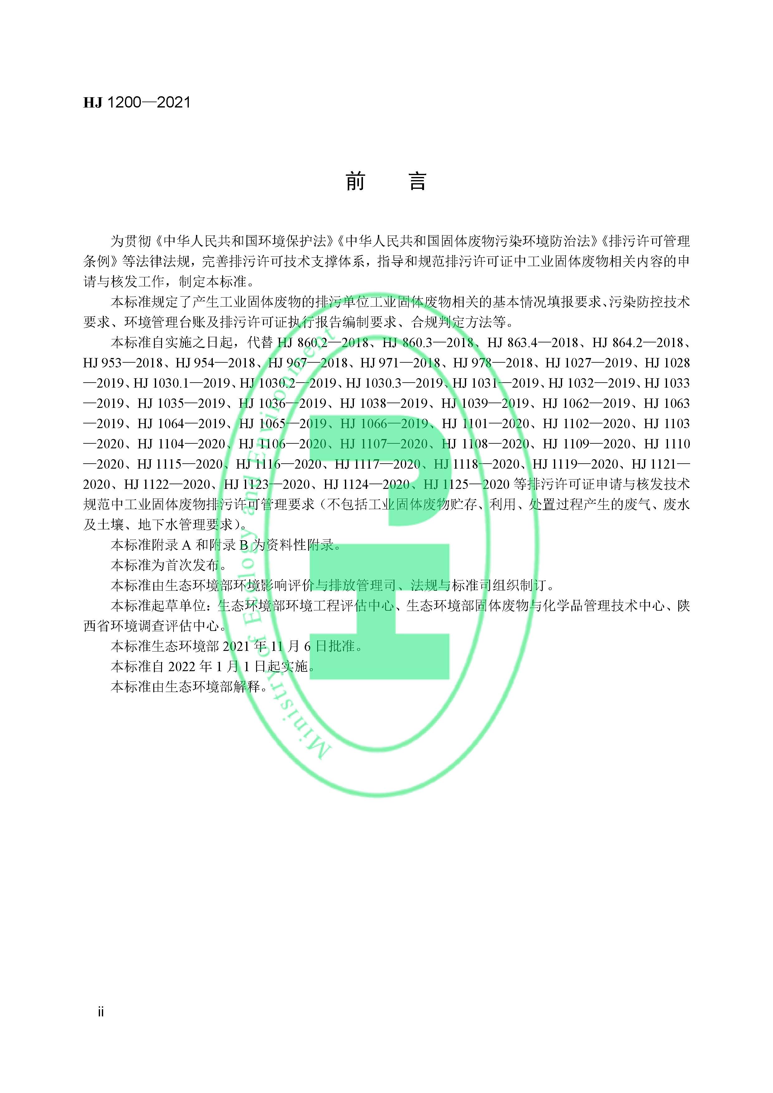 為貫徹《中華人民共和國環(huán)境保護(hù)法》《中華人民共和國固體廢物污染環(huán)境防治法》《排污許可管理?xiàng)l例》等法律法規(guī),完善排污許可技術(shù)支撐體系,指導(dǎo)和規(guī)范排污許可證中工業(yè)固體廢物相關(guān)內(nèi)容的申請與核發(fā)工作,制定本標(biāo)準(zhǔn)。本標(biāo)準(zhǔn)規(guī)定了產(chǎn)生工業(yè)固體廢物的排污單位工業(yè)固體廢物相關(guān)的基本情況填報(bào)要求、污染防控技術(shù)要求、環(huán)境管理臺賬及排污許可證執(zhí)行報(bào)告編制要求、合規(guī)判定方法等。本標(biāo)準(zhǔn)為首次發(fā)布。