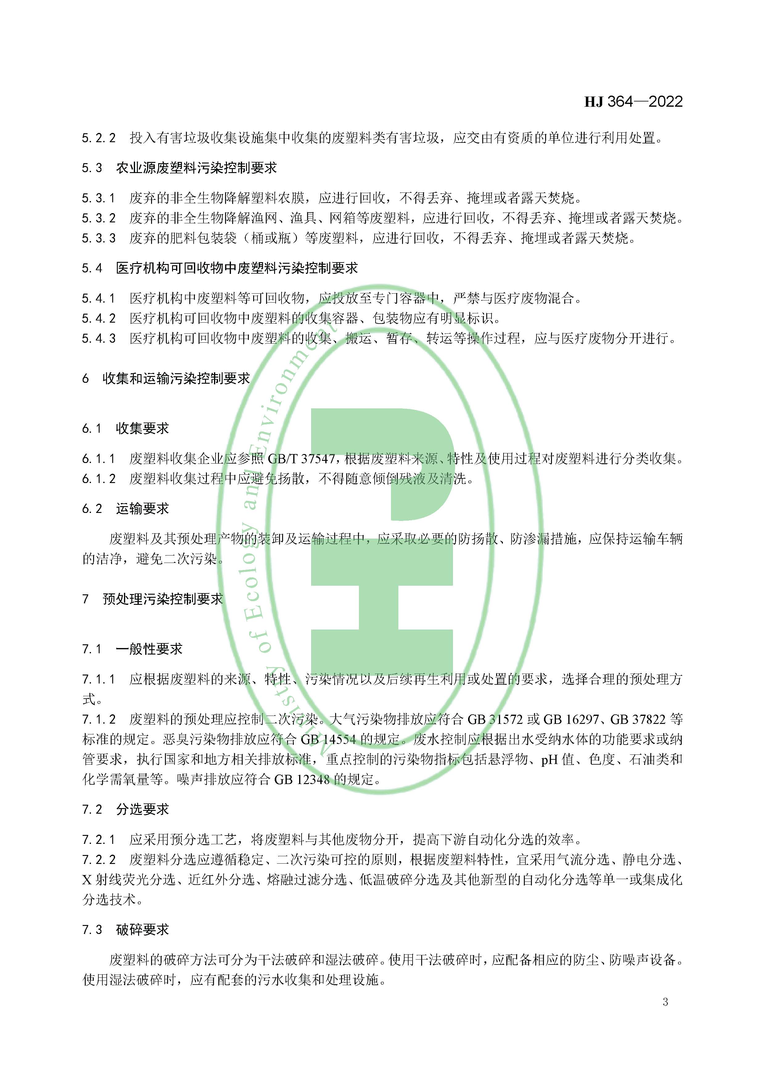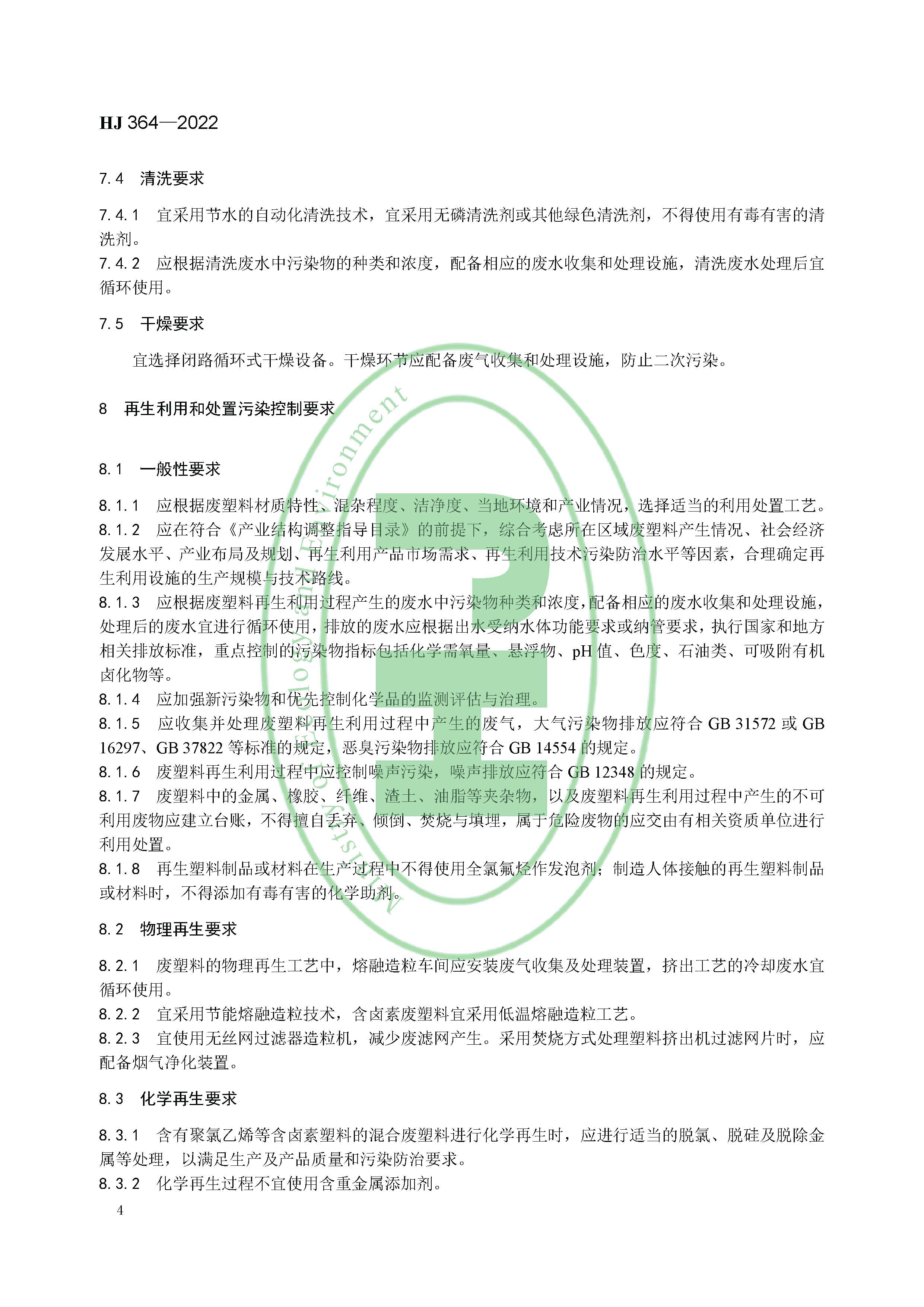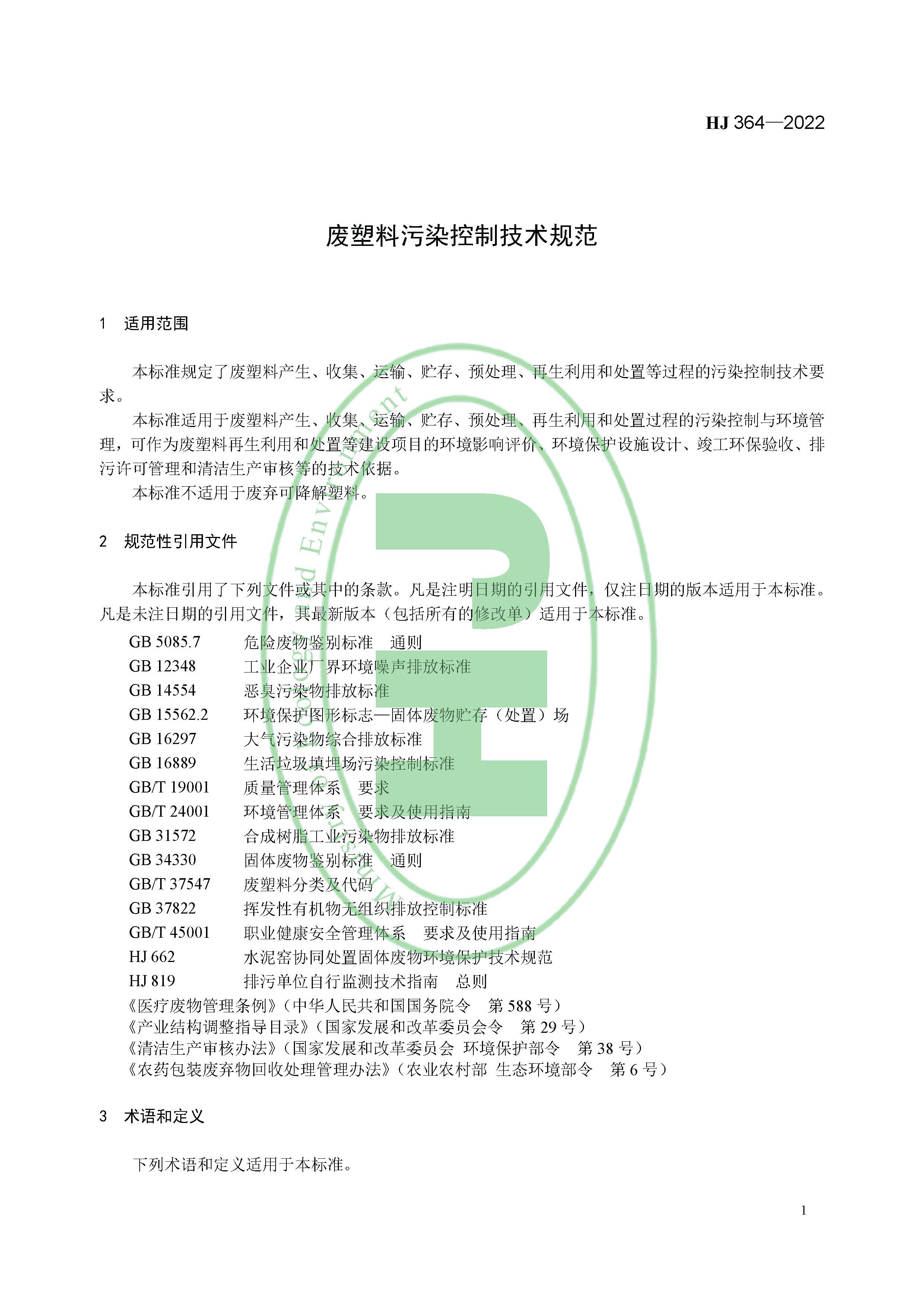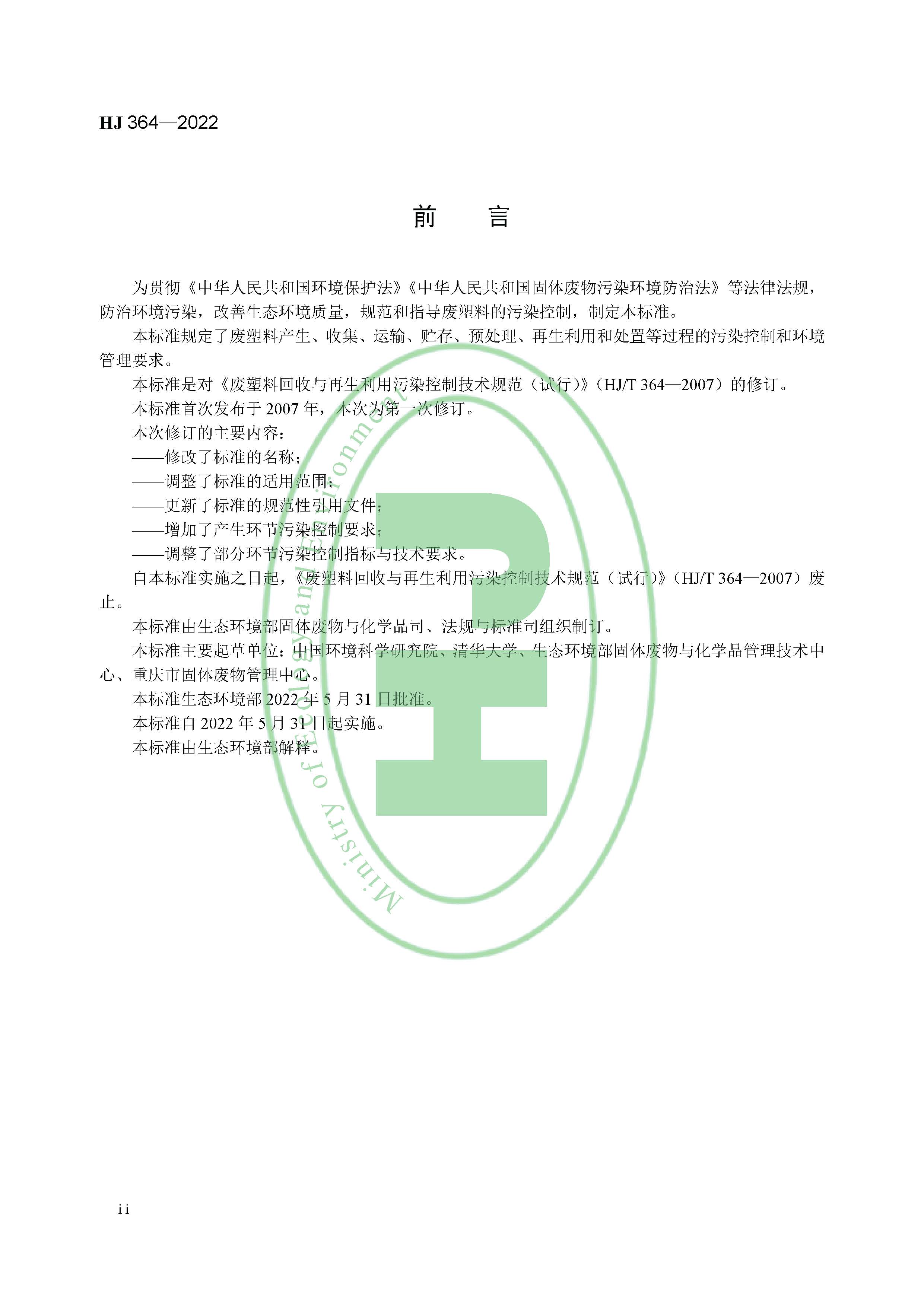 為貫徹《中華人民共和國(guó)環(huán)境保護(hù)法》《中華人民共和國(guó)固體廢物污染環(huán)境防治法》等法律法規(guī),防治環(huán)境污染,改善生態(tài)環(huán)境質(zhì)量,規(guī)范和指導(dǎo)廢塑料的污染控制,制定本標(biāo)準(zhǔn)。本標(biāo)準(zhǔn)規(guī)定了廢塑料產(chǎn)生、收集、運(yùn)輸、貯存、預(yù)處理、再生利用和處置等過程的污染控制和環(huán)境管理要求。本標(biāo)準(zhǔn)是對(duì)《廢塑料回收與再生利用污染控制技術(shù)規(guī)范(試行)》(HJ/T 364—2007)的修訂。本標(biāo)準(zhǔn)首次發(fā)布于 2007 年,本次為第一次修訂。