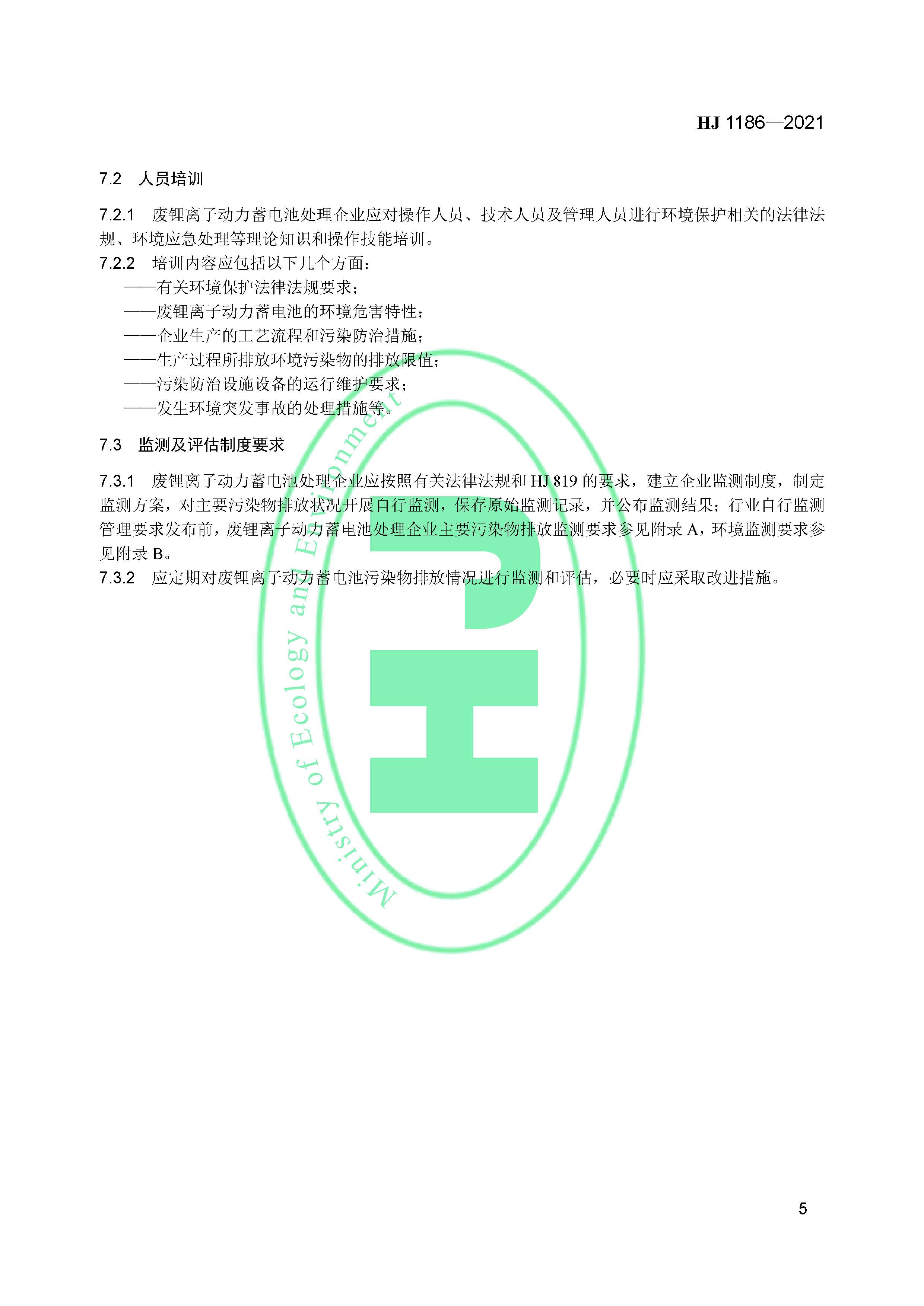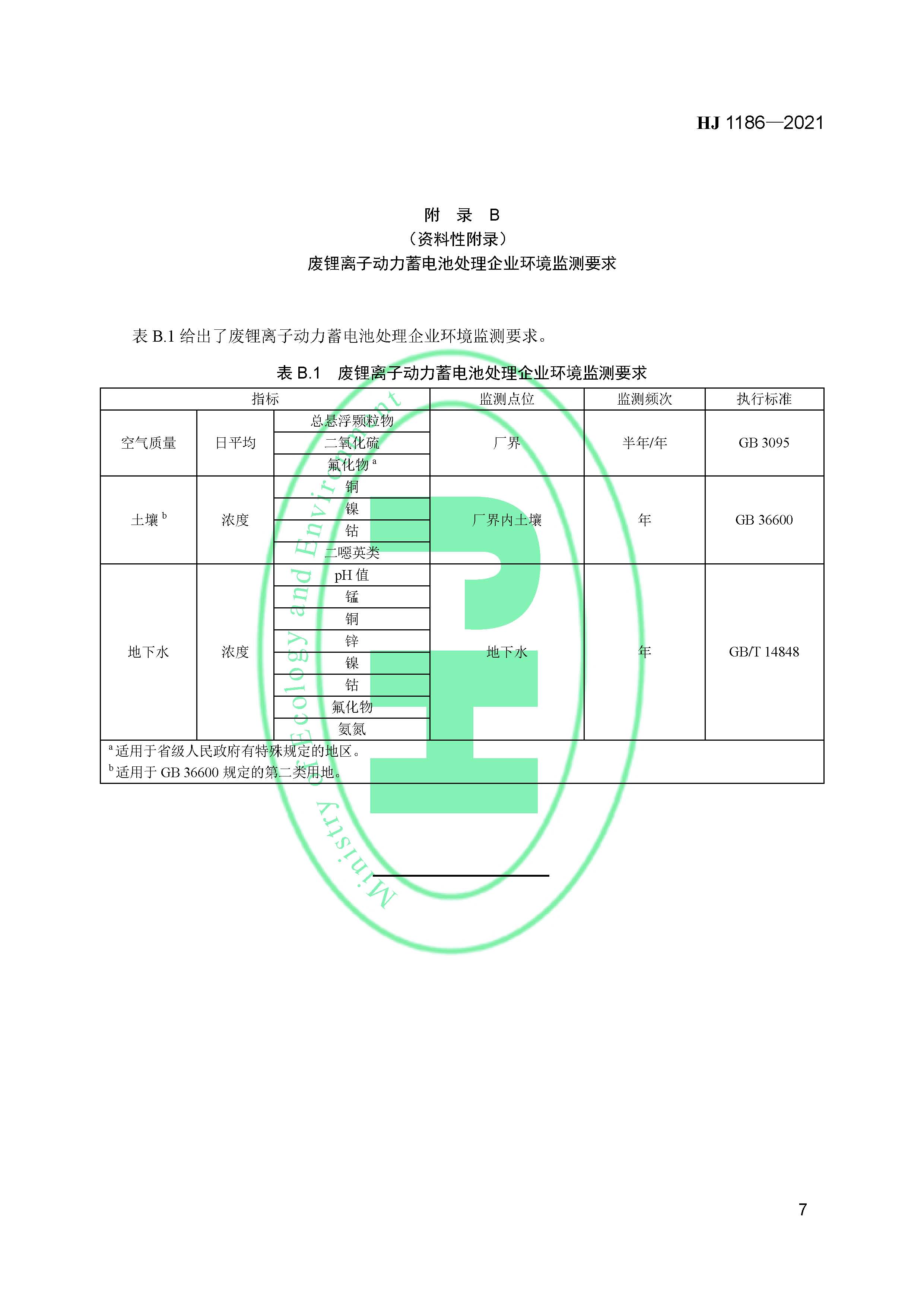 為貫徹《中華人民共和國環(huán)境保護(hù)法》《中華人民共和國固體廢物污染環(huán)境防治法》等法律法規(guī),防治污染,保護(hù)生態(tài)環(huán)境,規(guī)范和指導(dǎo)廢鋰離子動力蓄電池處理過程,制定本標(biāo)準(zhǔn)。本標(biāo)準(zhǔn)規(guī)定了廢鋰離子動力蓄電池處理過程的污染控制技術(shù)要求和運(yùn)行環(huán)境管理要求。本標(biāo)準(zhǔn)附錄 A 和附錄 B 為資料性附錄。本標(biāo)準(zhǔn)為首次發(fā)布。