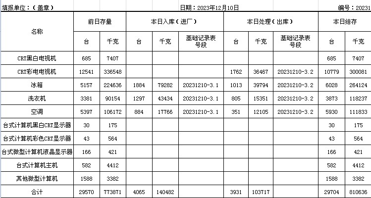 2023.12.10回收拆解統(tǒng)計(jì)表