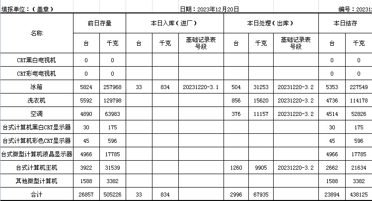 2023.12.20回收拆解統(tǒng)計(jì)表