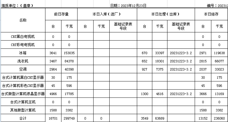 2023.12.23回收拆解統(tǒng)計(jì)表