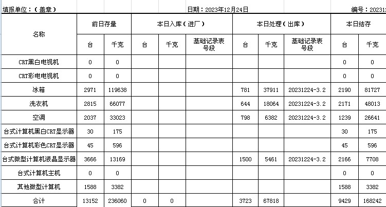 2023.12.24回收拆解統(tǒng)計(jì)表