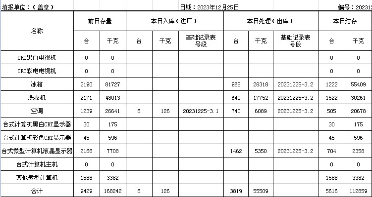 2023.12.25回收拆解統(tǒng)計表