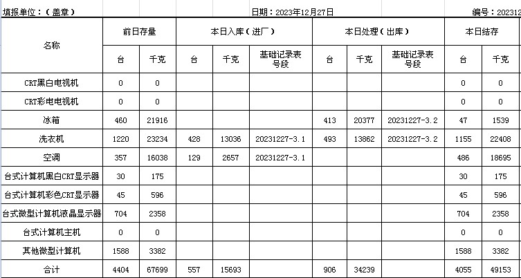 2023.12.27回收拆解統(tǒng)計(jì)表