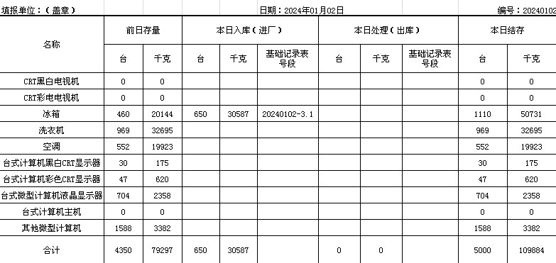 2024.01.02回收拆解統(tǒng)計(jì)表