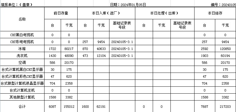 2024.01.05回收拆解統(tǒng)計(jì)表