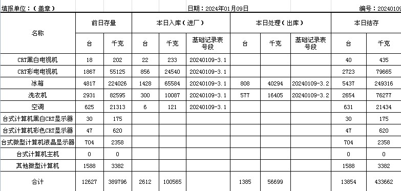 2024.01.09回收拆解統(tǒng)計表