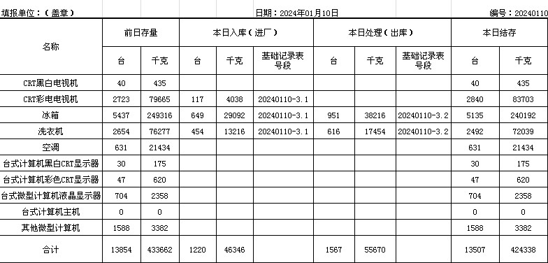 2024.01.10回收拆解統(tǒng)計(jì)表