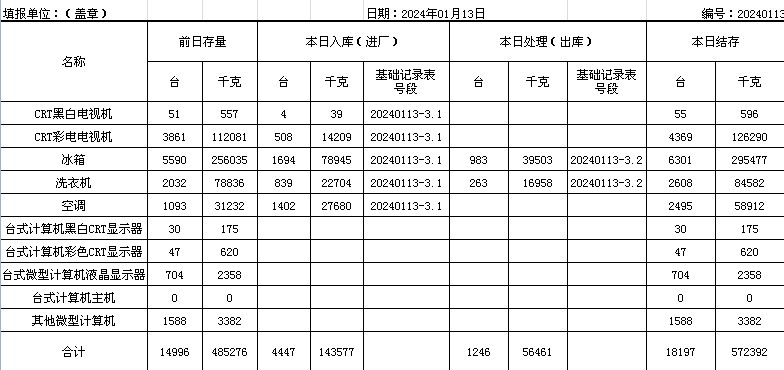 2024.01.13回收拆解統(tǒng)計(jì)表