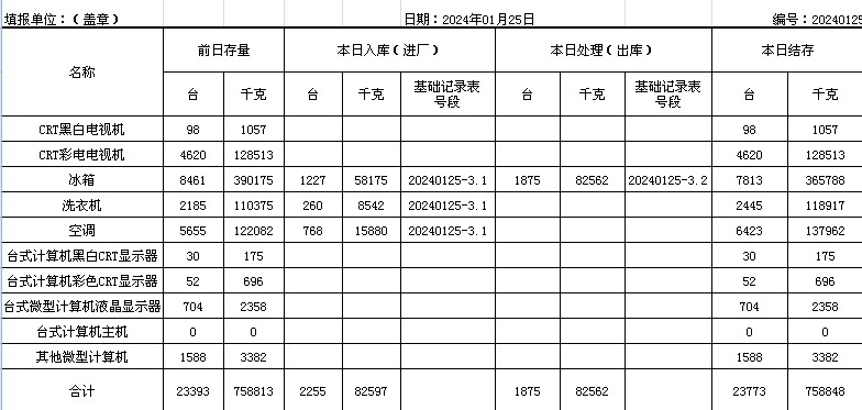 2024.01.25回收拆解統(tǒng)計(jì)表