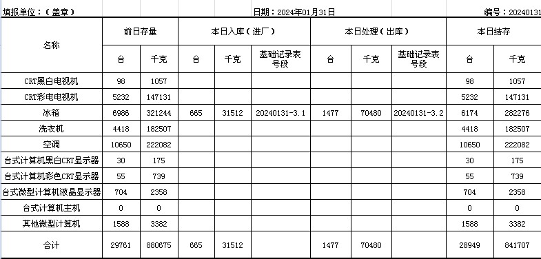 2024.01.31回收拆解統(tǒng)計(jì)表