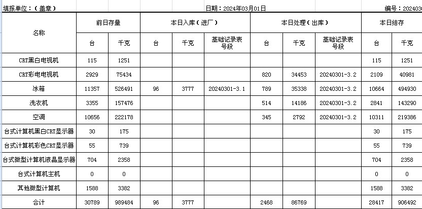 2024.03.01回收拆解統(tǒng)計(jì)表