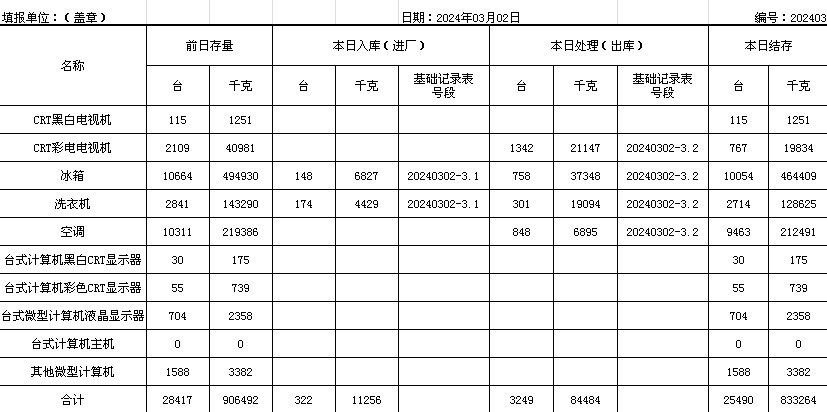 2024.03.02回收拆解統(tǒng)計表