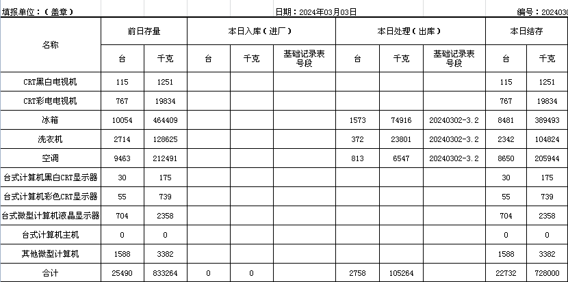 2024.03.04回收拆解統(tǒng)計(jì)表