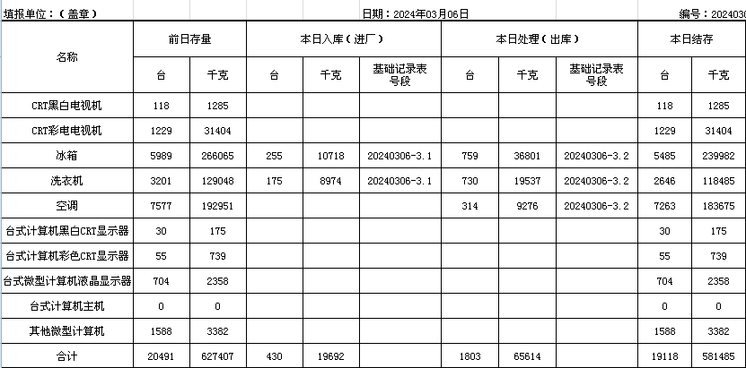 2024.03.06回收拆解統(tǒng)計表