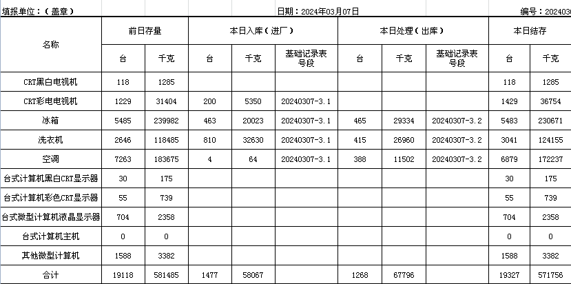 2024.03.07回收拆解統(tǒng)計(jì)表