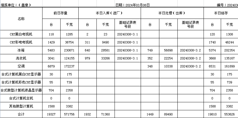 2024.03.08回收拆解統(tǒng)計(jì)表