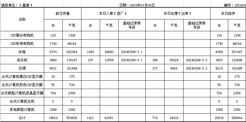 2024.03.09回收拆解統(tǒng)計(jì)表