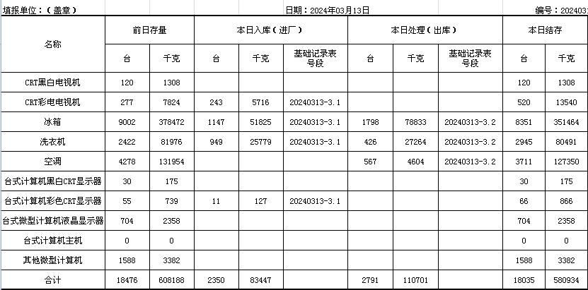 2024.03.13回收拆解統(tǒng)計表