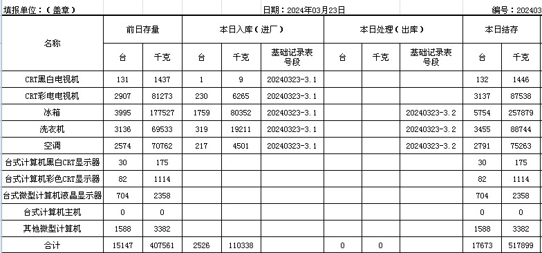 2024.03.23回收拆解統(tǒng)計表