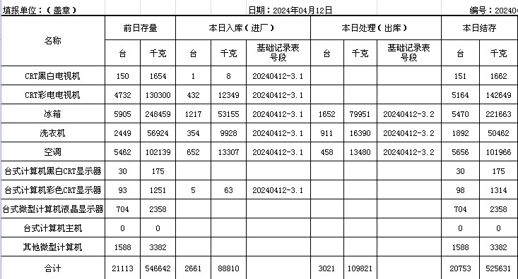 2024.04.12回收拆解統(tǒng)計(jì)表