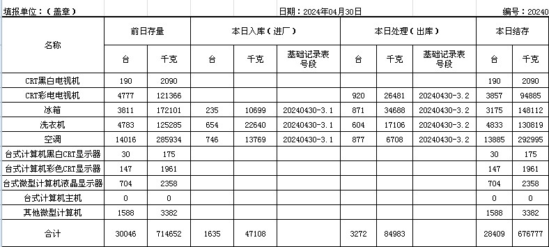 2024.04.30回收拆解統(tǒng)計(jì)表