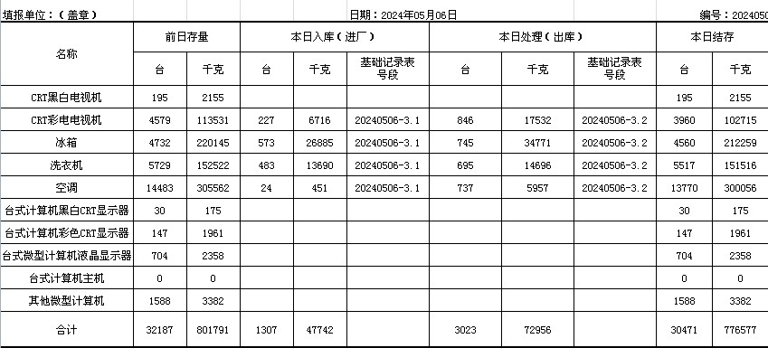 2024.05.06回收拆解統(tǒng)計(jì)表