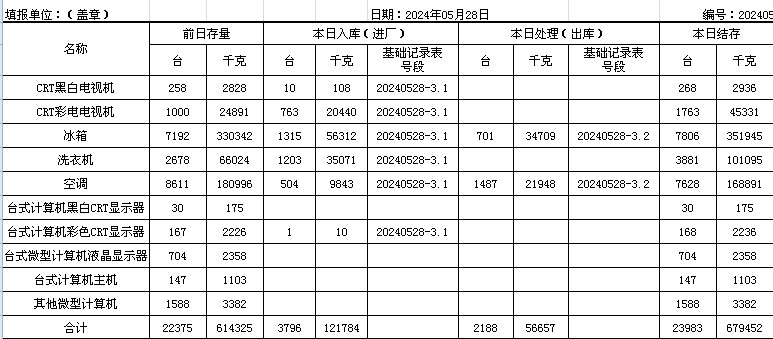 2024.05.28回收拆解統(tǒng)計(jì)表