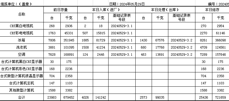2024.05.29回收拆解統(tǒng)計表