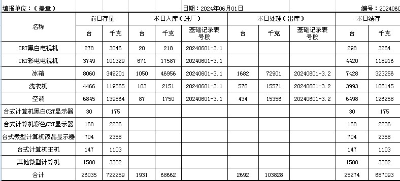2024.06.01回收拆解統(tǒng)計(jì)表