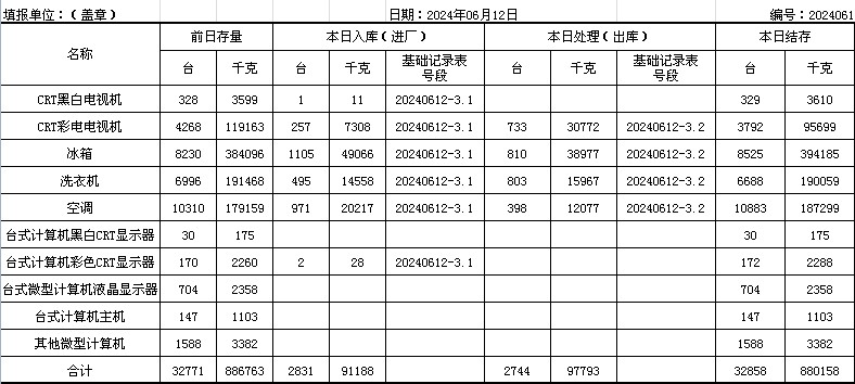 2024.06.11回收拆解統(tǒng)計(jì)表