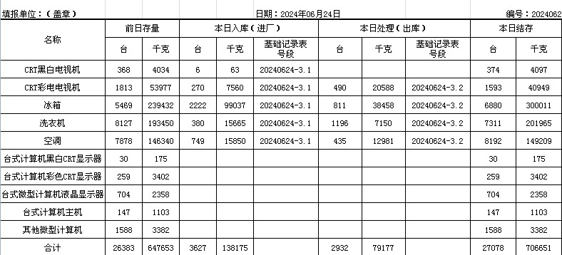 2024.06.24回收拆解統(tǒng)計(jì)表