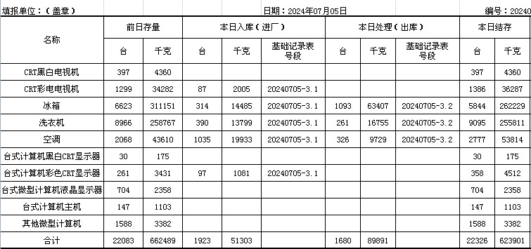 2024.07.05回收拆解統(tǒng)計(jì)表
