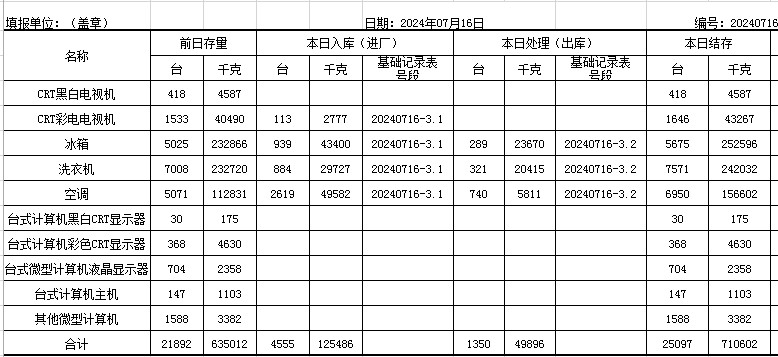 2024.07.16回收拆解統(tǒng)計表
