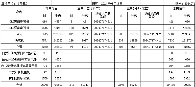 2024.07.17回收拆解統(tǒng)計(jì)表