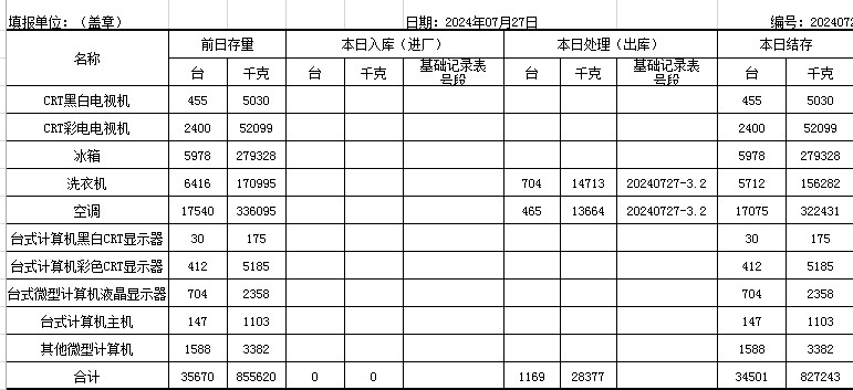 2024.07.27回收拆解統(tǒng)計表