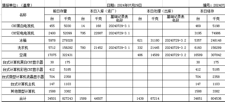 2024.07.29回收拆解統(tǒng)計(jì)表