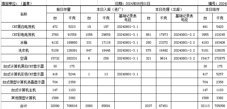 2024.08.01回收拆解統(tǒng)計表