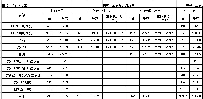 2024.08.02回收拆解統(tǒng)計表