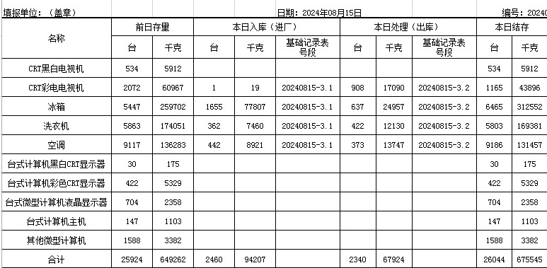 2024.08.15回收拆解統(tǒng)計(jì)表