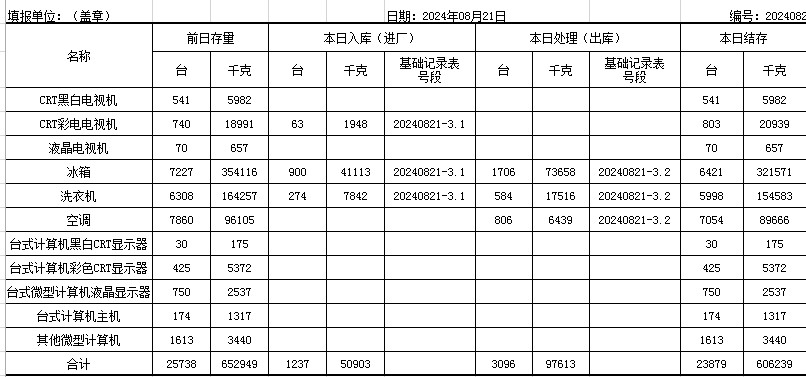 2024.08.21回收拆解統(tǒng)計(jì)表