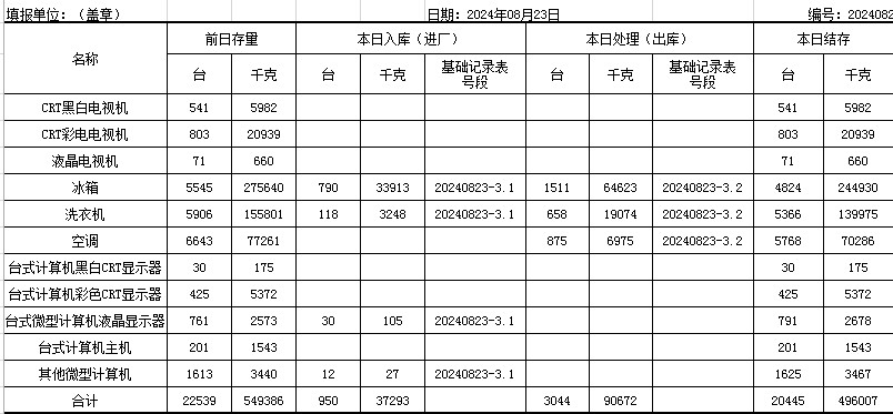 2024.08.23回收拆解統(tǒng)計(jì)表