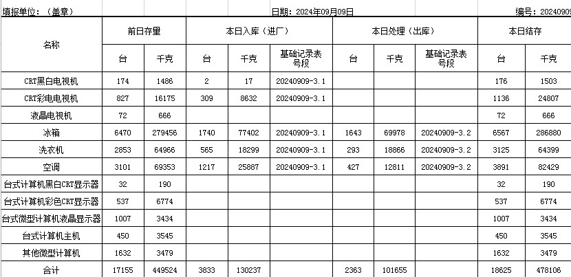 2024.09.09回收拆解統(tǒng)計表