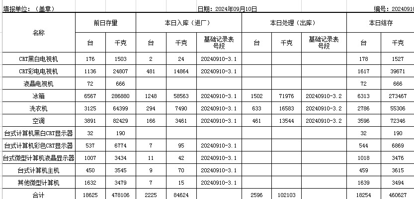 2024.09.11回收拆解統(tǒng)計(jì)表