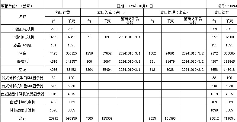 2024.10.10回收拆解統(tǒng)計(jì)表