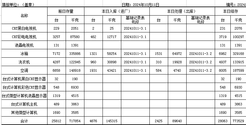 2024.10.11回收拆解統(tǒng)計(jì)表