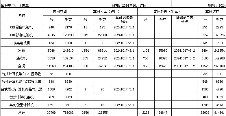 2024.10.17回收拆解統(tǒng)計(jì)表