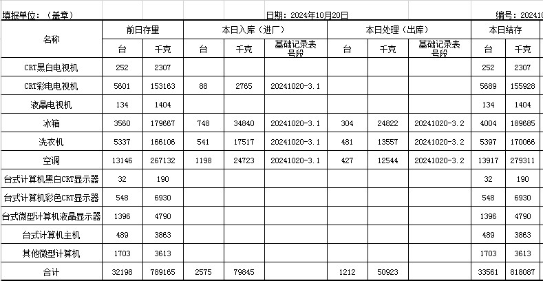 2024.10.19回收拆解統(tǒng)計(jì)表