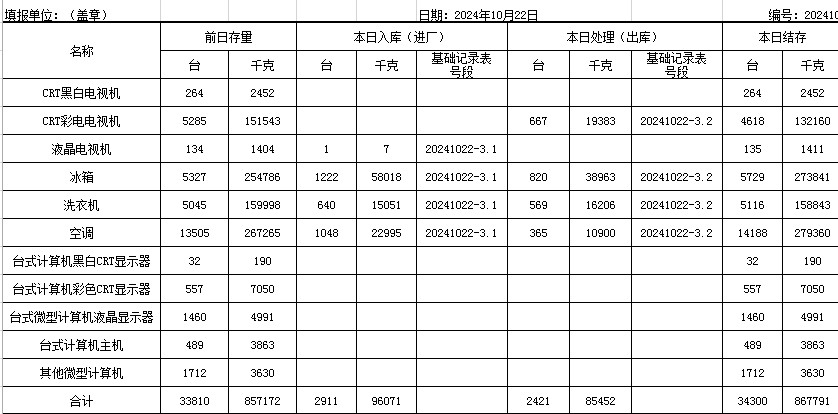 2024.10.22回收拆解統(tǒng)計(jì)表